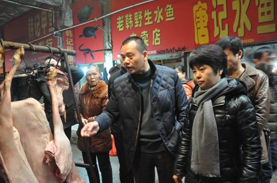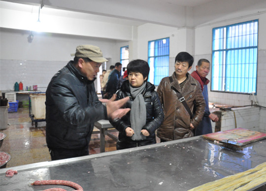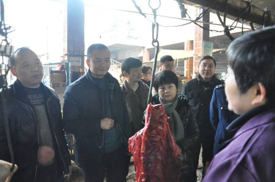 2月11日,津市市人大常委会副主任胡湘萍带领市食安办、市工商局、市质监局、市食品药品监督管理局、市畜牧兽医水产局等部门负责人,对我市部分食品加工厂、菜市场、超市、餐饮店进行了食品安全突击检查。