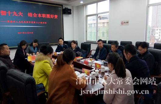 11月14日下午,常德市人大代表津市团第二小组在津市市地方税务局开展以“学习贯彻十九大结合本职履好责”为主题的小组活动。学习活动由常德人大代表津市团第二小组副组长、津市市地税局局长李太东主持,市人大常委会主任王育平出席活动并讲话。市人大常委会副主任邓惠荣应邀参加小组活动。