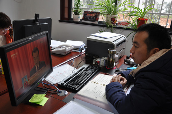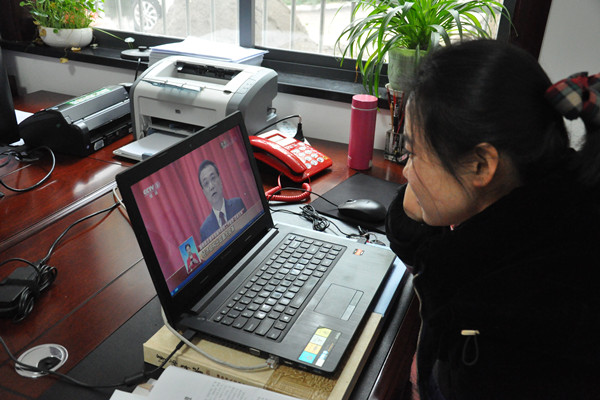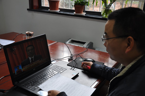 3月5日上午9时,第十三届全国人大一次会议在人民大会堂开幕,市人大常委会机关组织全体干部职工收看了开幕式,听取了国务院总理李克强关于政府工作报告。
