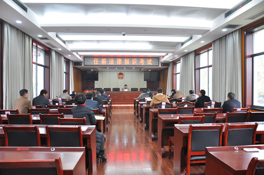 2月25日下午,在市人大常委会副主任李亚林主持下,18名拟任干部在人大常委会三楼会议室进行了任前法律知识考试。
