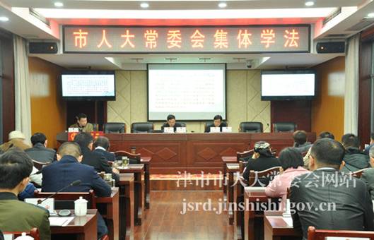 11月17日上午,津市市人大常委会举行集体学法活动。活动由市人大常委会副主任李亚林主持。市人大常委会组成人员、市人大法制委和财经委成员、镇(街)人大工作者、部分人大代表和市人大常委会机关工作人员等参加学习。