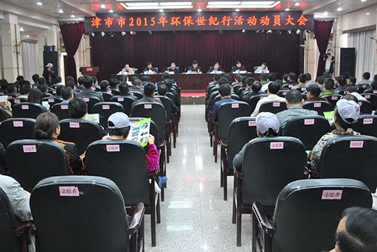 4月17日,津市市2015年环保世纪行活动动员暨环保志愿者协会成立大会在兰苑宾馆二楼会议中心召开。市人大常委会副主任邓开泉,市政府副市长李辉,市政协副主席曹后新出席会议,市政府办等37家组委会成员单位、湘澧盐化有限公司等44家重点企业、7个乡镇环保站、28个村委会和环保部门中层以上负责人,以及50名环保志愿者共计180余人参加了会议。会议由市环保世纪行组委会办公室主任、市人大常委会财经工委主任石承强主持。