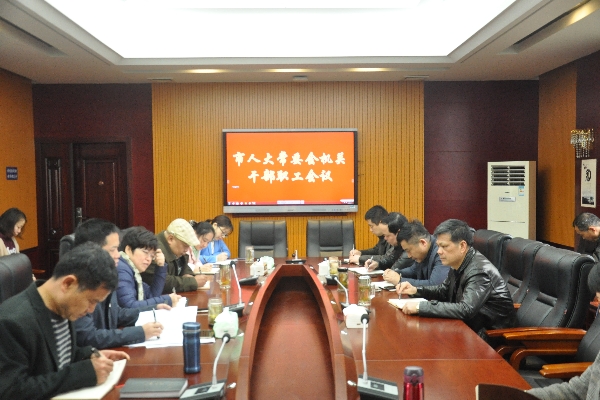 3月29日上午,市人大常委会机关召开干部职工会议,市人大常委会主任王育平,副主任邓惠荣、胡湘萍、邓开泉及及机关全体干部职工参加会议。