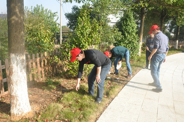 11月1日,在新洲镇五泉社区的道路上,市人大机关的志愿者们一行正热火朝天地清理沟渠及道路垃圾。