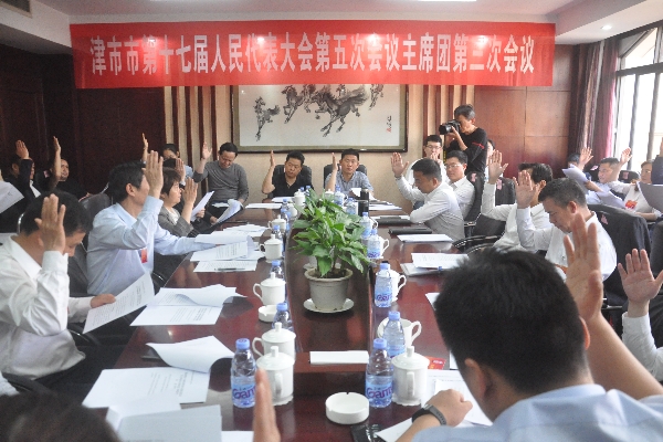 4月26日晚上,津市市第十七届人民代表大会第五次会议举行主席团第三次会议。