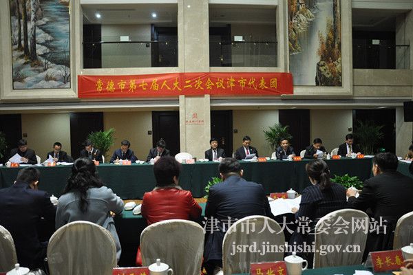 • 1226日上午,参加常德市第七届人民代表大会第二次会议的津市代表团全体代表在驻地集中讨论审议曹立军代市长所作的政府工作报告。会议由津市代表团团长王育平主持。常德市委常委、组织部长梁仲,常德市人大常委会副主任戴君耀,津市市委书记傅勇,津市市委副书记、市人民政府代市长黄旭峰,津市市人大常委会副主任、党组副书记邓惠荣参加分团讨论会。